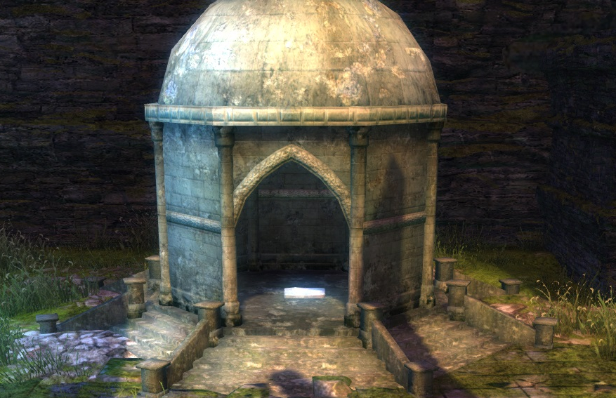 Nachdem Ihr durch den Spalt getreten seid, wendet euch nach links. Nach einigen Metern befindet sich Euer Ziel auf der linken Seite.