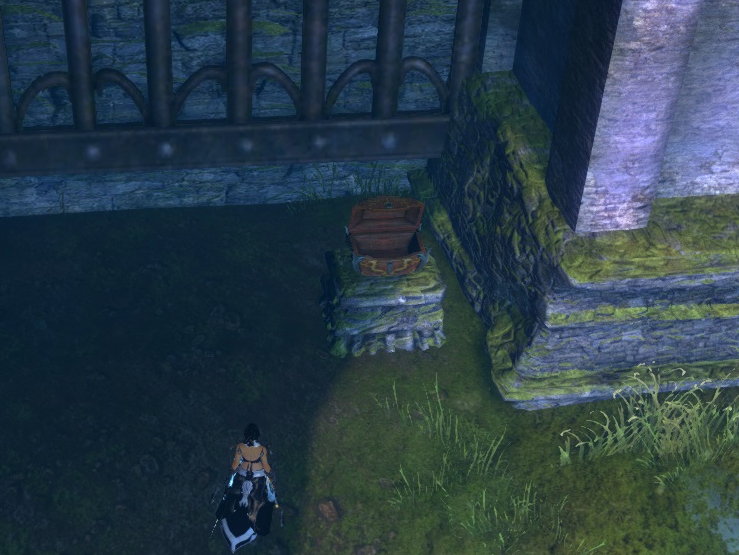 Die erste Truhe findet Ihr unter dem Balkon zu Beginn des Geisterlaufs.
