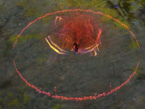 Cairn kanalisiert einen starken Angriff und krümmt sich währenddessen etwas zusammen. Es tauchen grüne Felder auf, in welchen die Spieler am Ende des Kanalisierens stehen müssen, um dem Angriff zu entgehen. Diese Felder gibt es in drei verschiedenen Größen: klein, mittel und groß. In ein Feld müssen, je nach seiner Größe, eine bestimmte Anzahl an Spieler. In ein kleines Feld muss mindestens ein, in ein Mittleres müssen zwei und in ein Großes vier Spieler. Nicht jedes Feld auf der Plattform muss besetzt werden, es können also auch alle Spieler in einem Feld stehen. Die Anzahl der Spieler, die mindestens in ein Feld müssen, wird durch gelbe Punkte angezeigt, die über den Feldern schweben. Am Besten nutzt Ihr