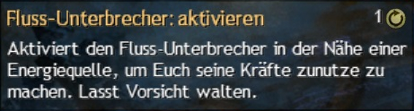 ausschalten. Wenn der Fluss-Unterbrecher aktiv ist, kann sich ein Spieler mit einem Pylonen verbinden (nötig zum Kiten). Sobald man die Verbindung zu seinem Pylonen unterbricht (durch Ausschalten des Fluss-Unterbrechers oder zu große Entfernung zu dem Pylonen), hat man fünf Sekunden Zeit, zum Pylonen zurückzukehren. Sonst wird dessen Trotzleiste erneut aktiv, was dazu führt, dass Qadim