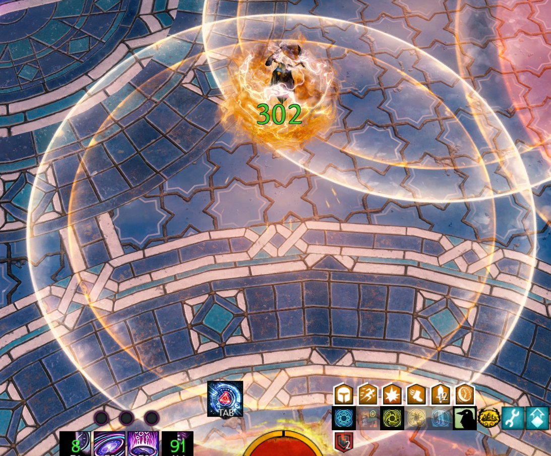 Macht bekommt man (einen Stapel mehr pro verbundener Sekunde) bis an das Maximum von 25 Stapeln. Wenn die Kugeln erfolgreich aufgesammelt und zu den Pylonen gebracht werden, kann für jede Kugel des Pylonen die Verbindung einen Spieler mehr beinhalten. Für jeden Spieler, der mit einem Pylonen verbunden ist, erhält Qadim den Debuff Unstete Energie, durch den er pro verbundenem Spieler 5 % mehr Schaden bekommt. Somit könnte man maximal einen Schadensmultiplikator von 45 % erreichen.