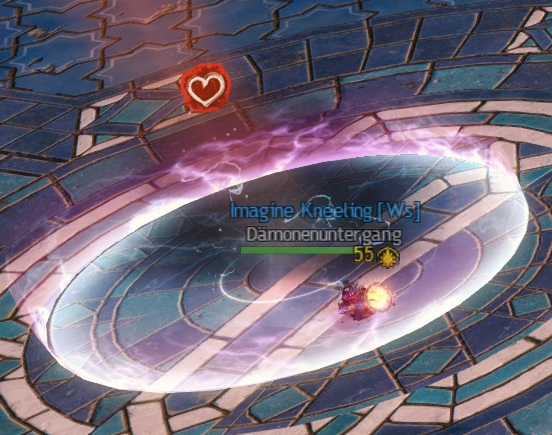 Herz im Rücken tanken. Ob Ihr gut steht oder nicht, könnt Ihr überprüfen, indem Ihr auf die Ränder der Anküdigung des Ätherschlags achtet. Die Ränder sollten ungefähr mit den weißen Linien, die von der Mitte nach außen gehen, übereinstimmen.