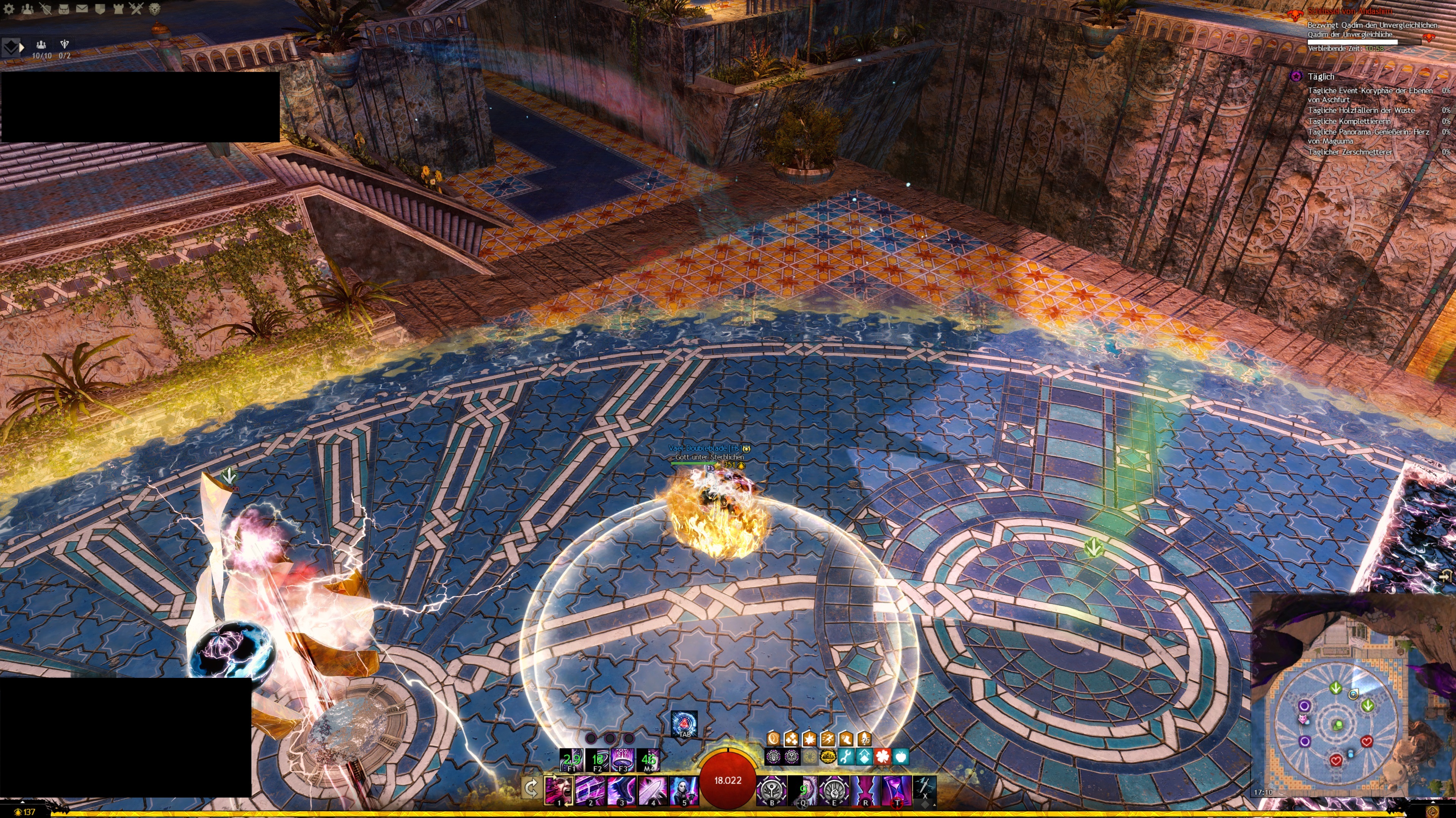 ausschaltet oder Ihr oder Qadim den inneren Kreis verlasst. Somit solltet Ihr bis 40 % Leben von Qadim wenig Probleme haben, den Fokus zu bekommen und zu behalten.