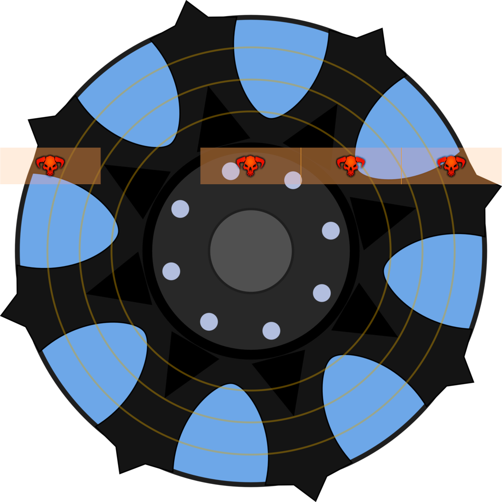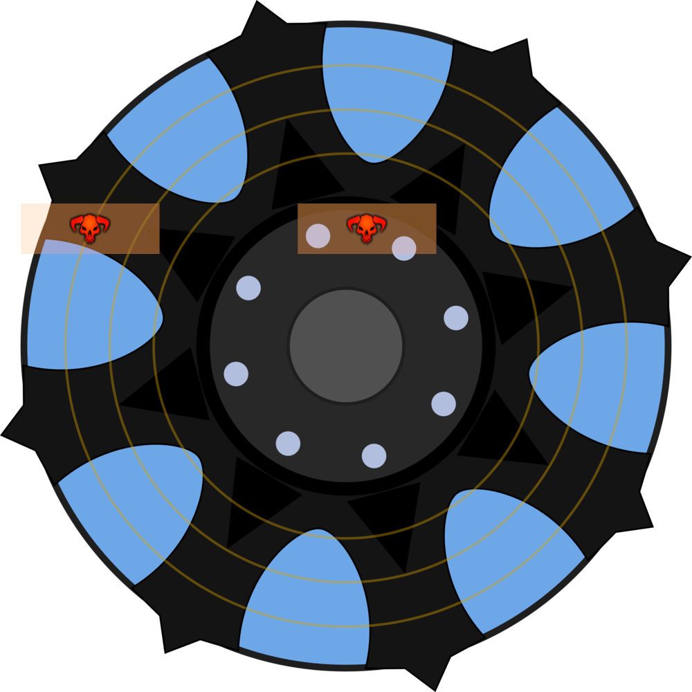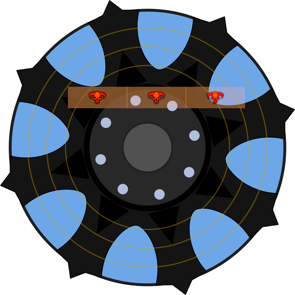 Zu Kampfbeginn besteht die Wand aus zwei Segmenten. Ein Segment entspricht dabei einem Fünftel des Plattformdurchmessers. Es muss sich jedoch nicht um zusammenhängende Segmente handeln, sondern es kann auch Lücken zwischen den Segmenten geben. Die Bilder rechts zeigen Euch Beispiele für eine Wand aus zwei, drei und vier Segmenten.