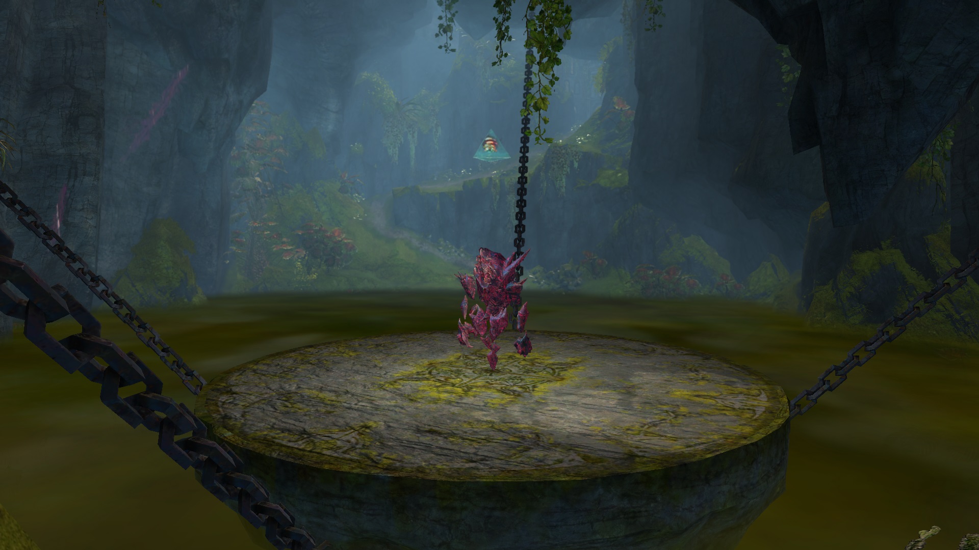 Der Kampf gegen Cairn findet auf der schwebenden Plattform statt, welche Ihr oben sehen könnt. Es gibt keine besonderen Phasen, in denen Cairn nicht angreifbar wäre oder die Gruppe eine Zwischenmechanik machen müsste. Auch vom benötigten Schaden ist der Kampf ziemlich entspannt, da man einerseits viel Zeit hat und andererseits die Erzürnt-Mechanik (auch: Enraged) bei Cairn vernachlässigbar ist. Das Hauptziel ist also das Überleben und richtige Ausführen der Mechaniken. Dazu zählt vor allem auch, dass Ihr nicht von seinen verschiedenen Angriffen von der Plattform geschleudert werdet.