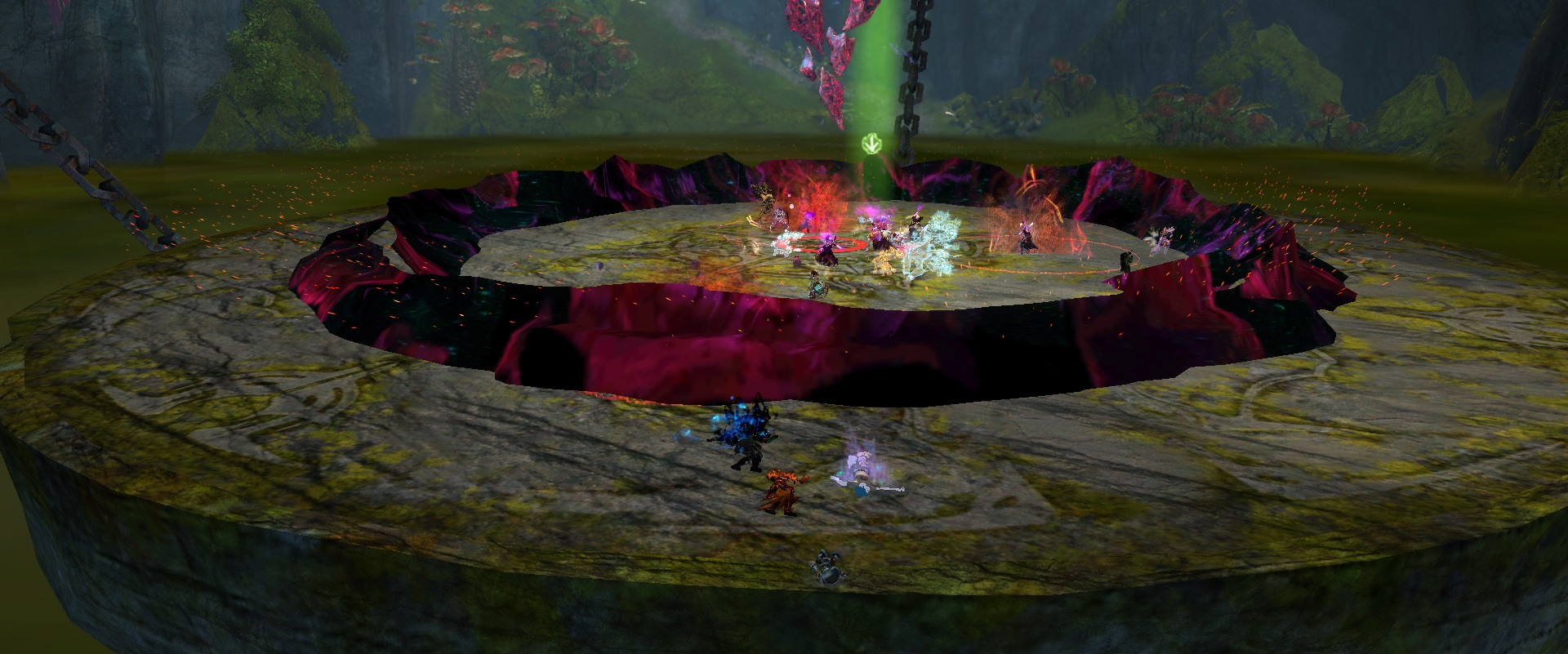 Solltet Ihr nicht rechtzeitig in einem grünen Feld stehen oder in Eurem Feld zu wenige Spieler sein, werdet Ihr in die Luft gehoben, bekommt viel Schaden und 30 Stapel von Ungesehener Bürde. Dem Hochheben kann man mit