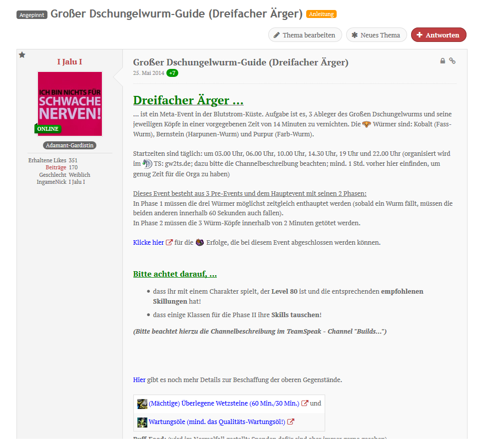 Was ich nicht verstehe ist, warum man nicht angesprochen wird, um den Guide zu aktualisieren, so wie ich es mehrfach im TS angeboten habe. (Und ja, es ist bekannt, wo man mich erreichen kann.)