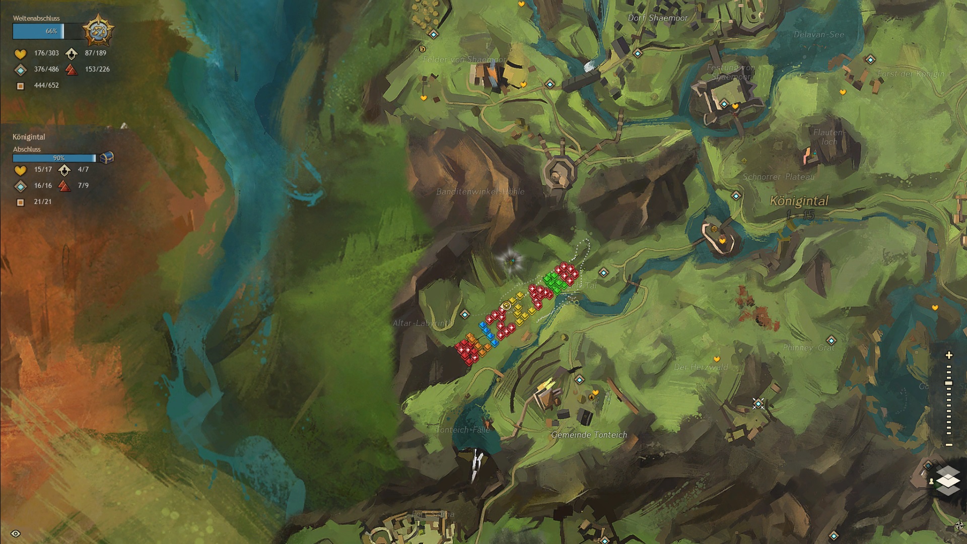 • Jeden Mittwoch um 16 Uhr ist Map Clear mit der Community. Das lasse ich mir selten entgehen. Es bietet Gelegenheit Heldenpunkte, Beherrschungspunkte oder einfach nur die vollständige Karte zu bekommen und nebenbei Spaß zu haben.
