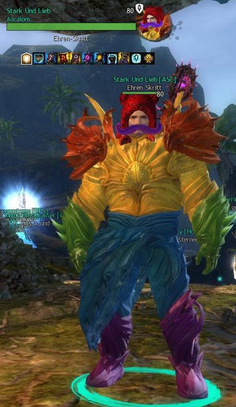Zu Anfang von GW2 (weswegen ich auch keinen Screenshot besitze) is mir öfters ein Asura mit dem Namen "Bro Kool Lee" über die Füße gelaufen, glaube mich daran zu erinnern das er auch nen grünen Afro hatte...