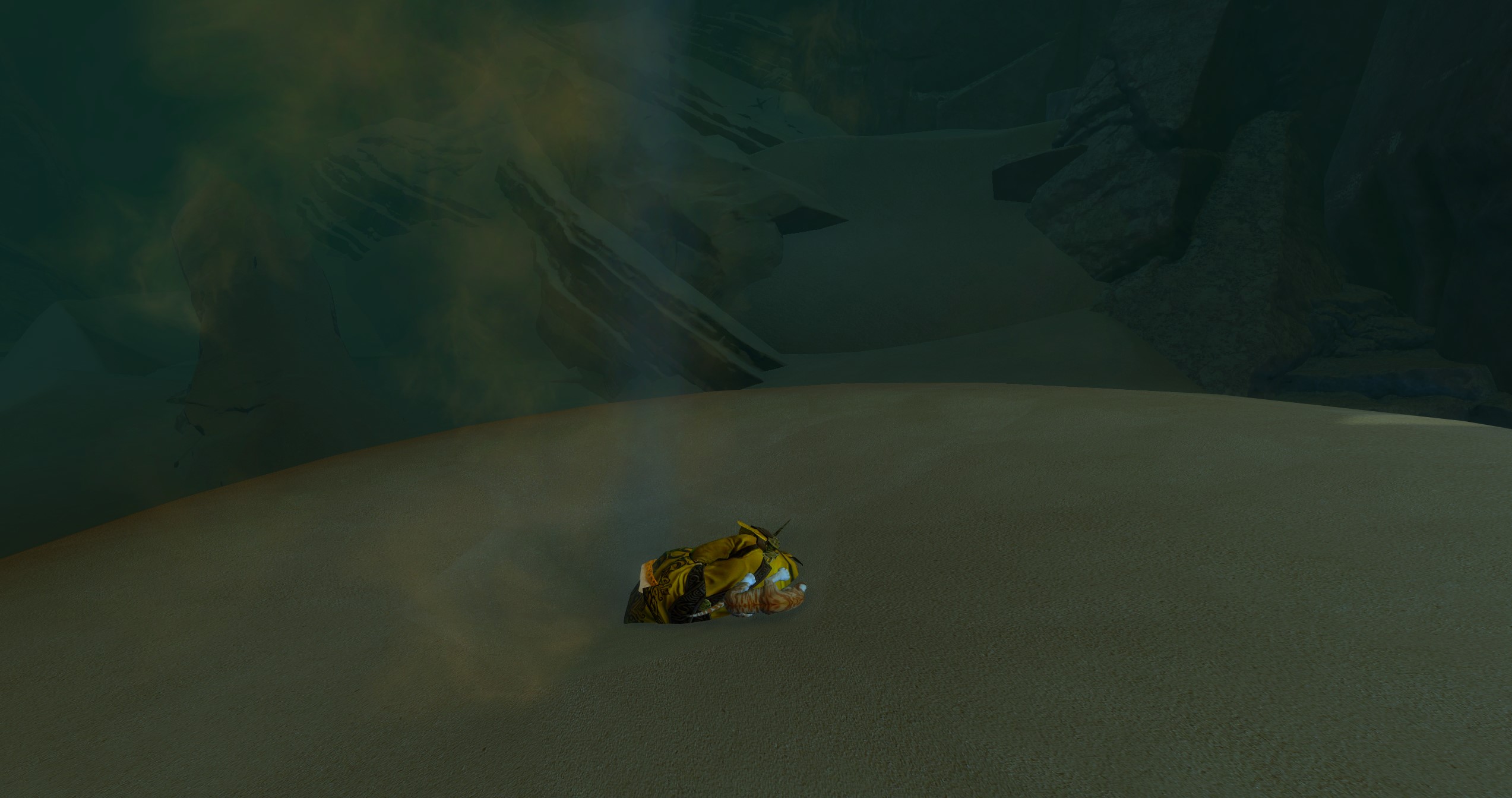 Als klar war, dass die nächste Erweiterung in der Wüste spielt, hatte ich noch viel größere Karten mit vereinzelten Oasen und nem Verdurstungs-Debuff erwartet, wo man sterben könnte, wenn man nicht rechtzeitig die nächste Wasserstelle erreicht, um dem Spieler so ein Gefühl von "Verloren in der Wüste" zu vermitteln.