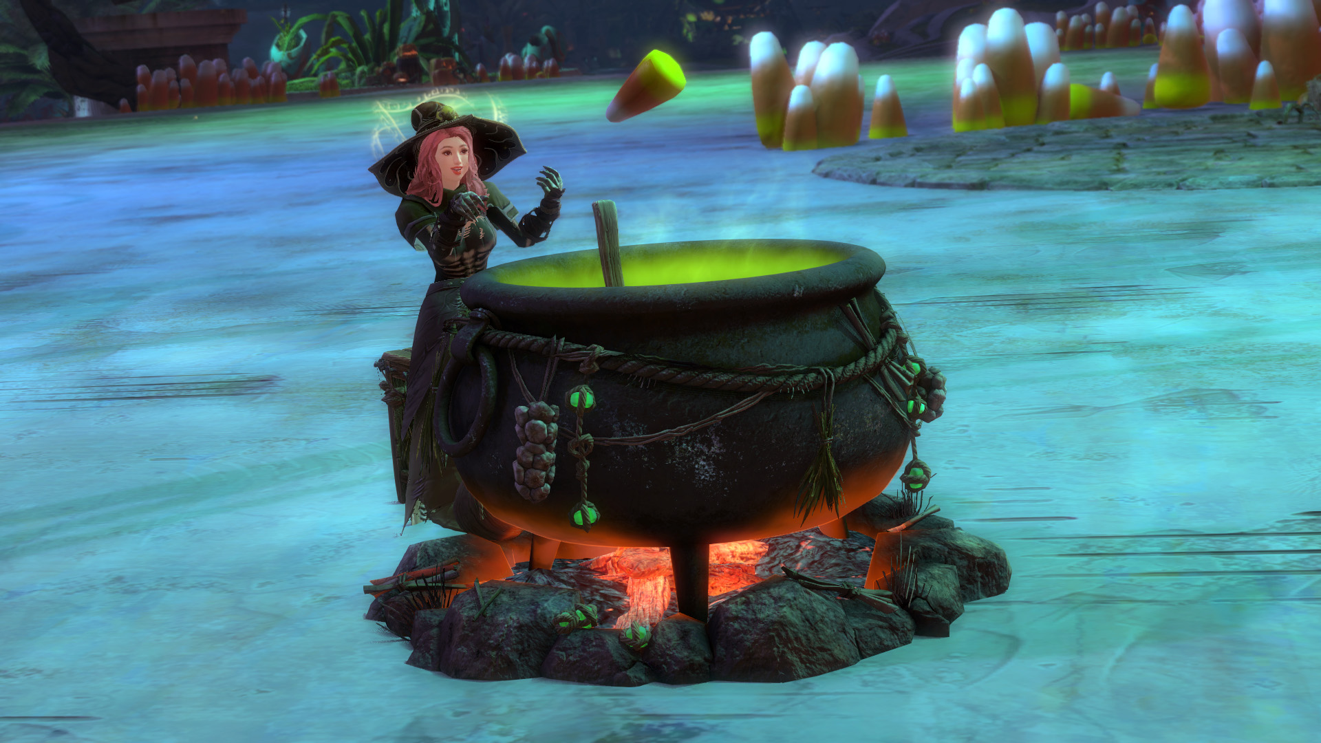 Zaubert ein furchterregendes Gebräu unter dem wolkenverhangenen Auge des Mondes. In diesem Kessel blubbern grüne Geister und ein Geheimrezept, das euren Gästen einen Blick ins Leben nach dem Tod gewährt. Während ihr vor eurer garstigen Brühe sitzt, könnt ihr eine Fertigkeit aktivieren, um eine schauderhafte Zutat hineinzuwerfen. Der Hexenkessel-Stuhl ist als neuer exklusiver Beuteabwurf aus Schwarzlöwen-Truhen erhältlich.