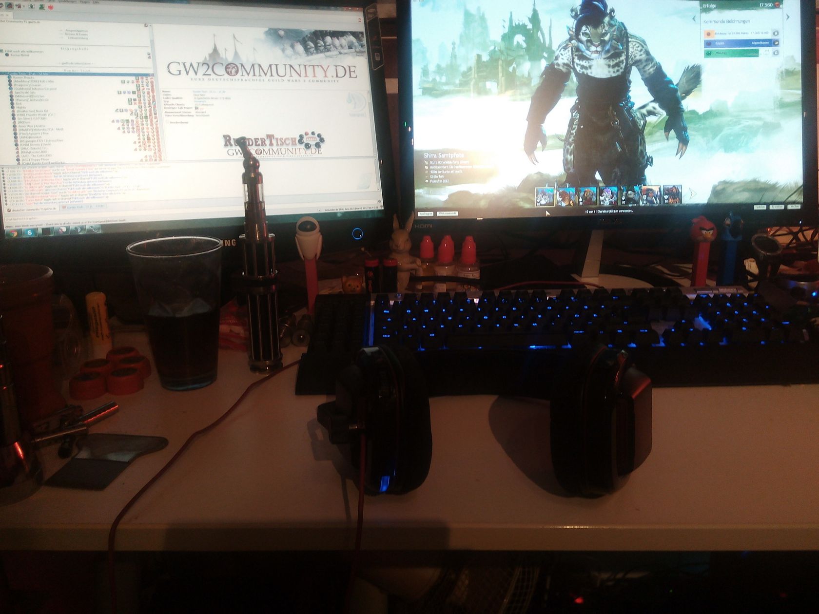 Meine kleine Station, wo ich die meiste Zeit sitze. Inzwischen mit zweiten TFT und bissle Gedöns.