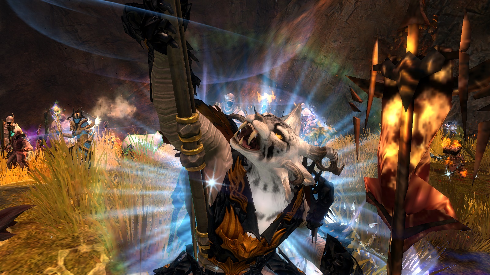 Tja das ist mein Maincharakter Xhexi beim Bekämpfen eines Wachtritters beim Angriff auf Löwenstein.