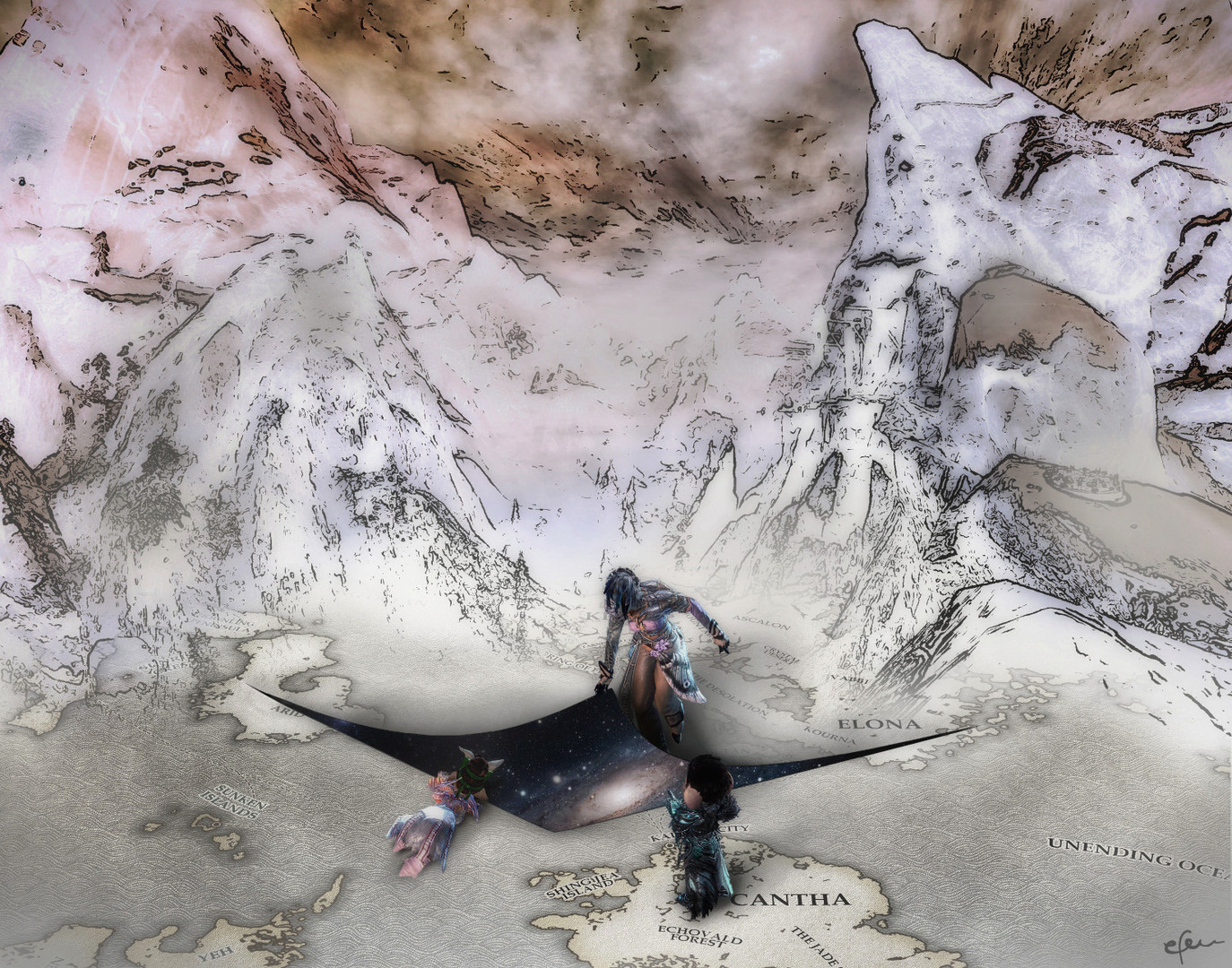 Auch hier ist die eigentliche Erstellung ne Weile her, hab aber erst jetzt Zeit, es zu Uploaden. Diesmal ist recht wenig aus echten Fotos entstanden (eigentlich nur der Space), sodass das Verhältnis von Screens/Realfotos/Malen bei ca. 80/5/15 liegt.