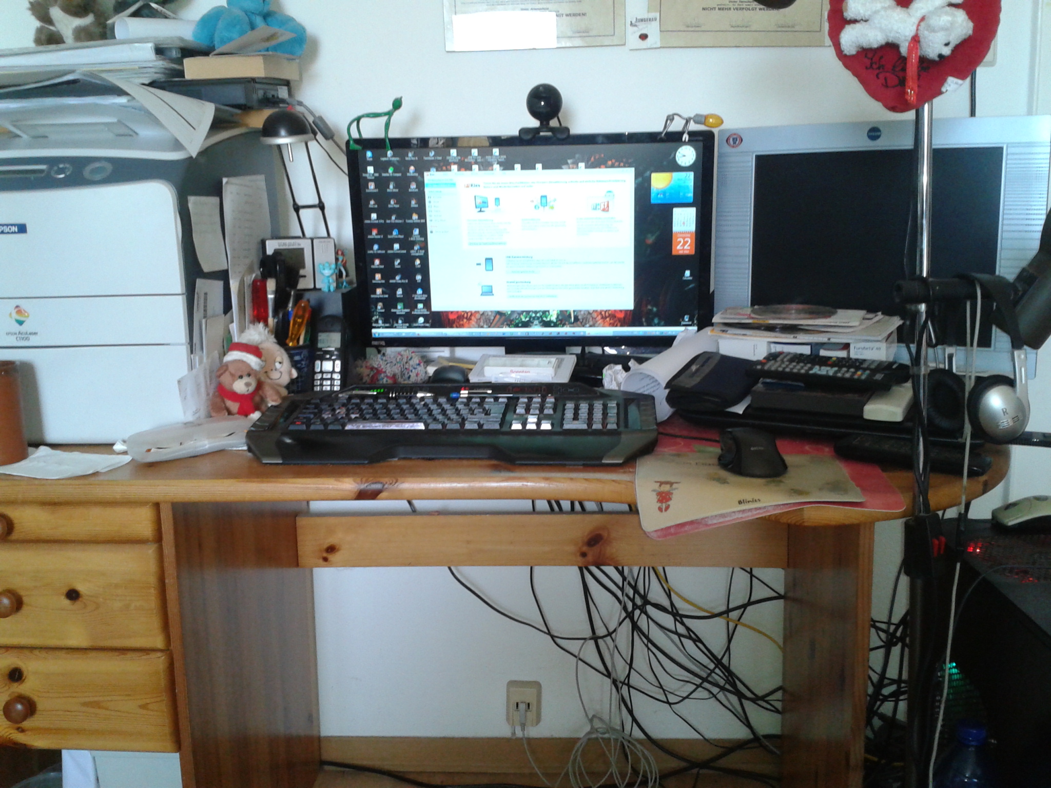 Das Mauspad (rot) ist ein Untersetzer wo manchmal was zu trinken steht. Der Lappi ist nicht immer da.