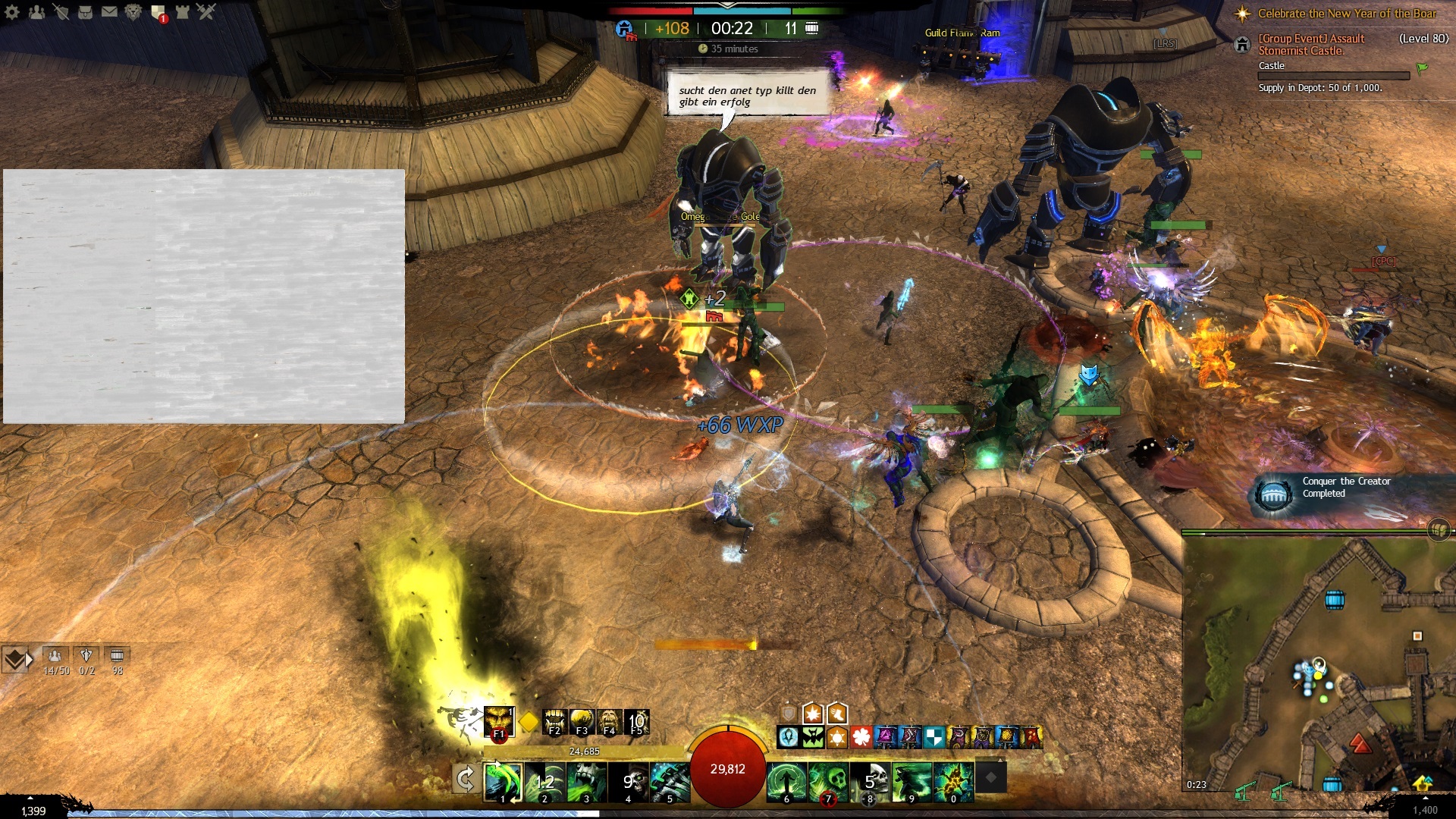 Besonders im WvW sieht man, wenn man nicht gerade ein DE-DE-DE-MatchUp hat, immer wieder Strukturen, die von der ArenaNet-Gilde geclaimed wurden. Da hat man schon Chancen.