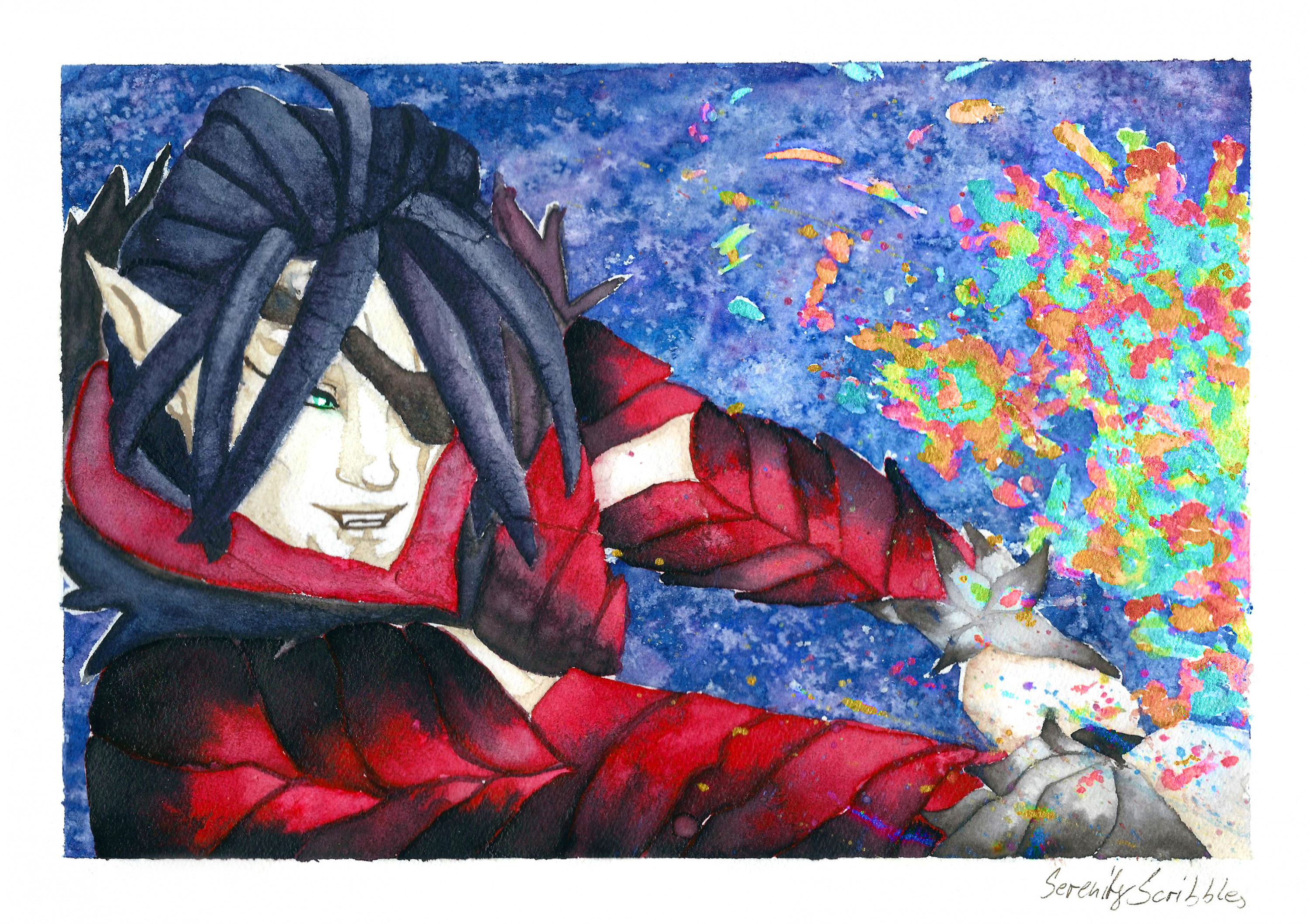 Ich habe noch nie ein Watercolor Bild mit Hintergrund gemacht, war daher auch eher das "Try and Error"-Prinzip mit extremer Lernkurve.
