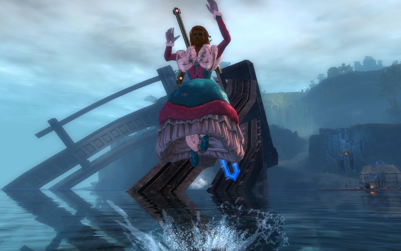 Und da ist sie Lvl. 80 und natürlich gleich schön ausgestattet mit dem Winterkleidchen! Verträgt sich auch super mit dem Wasser, aber als Wächterin hält man das schwere Gewicht aus! ![]()